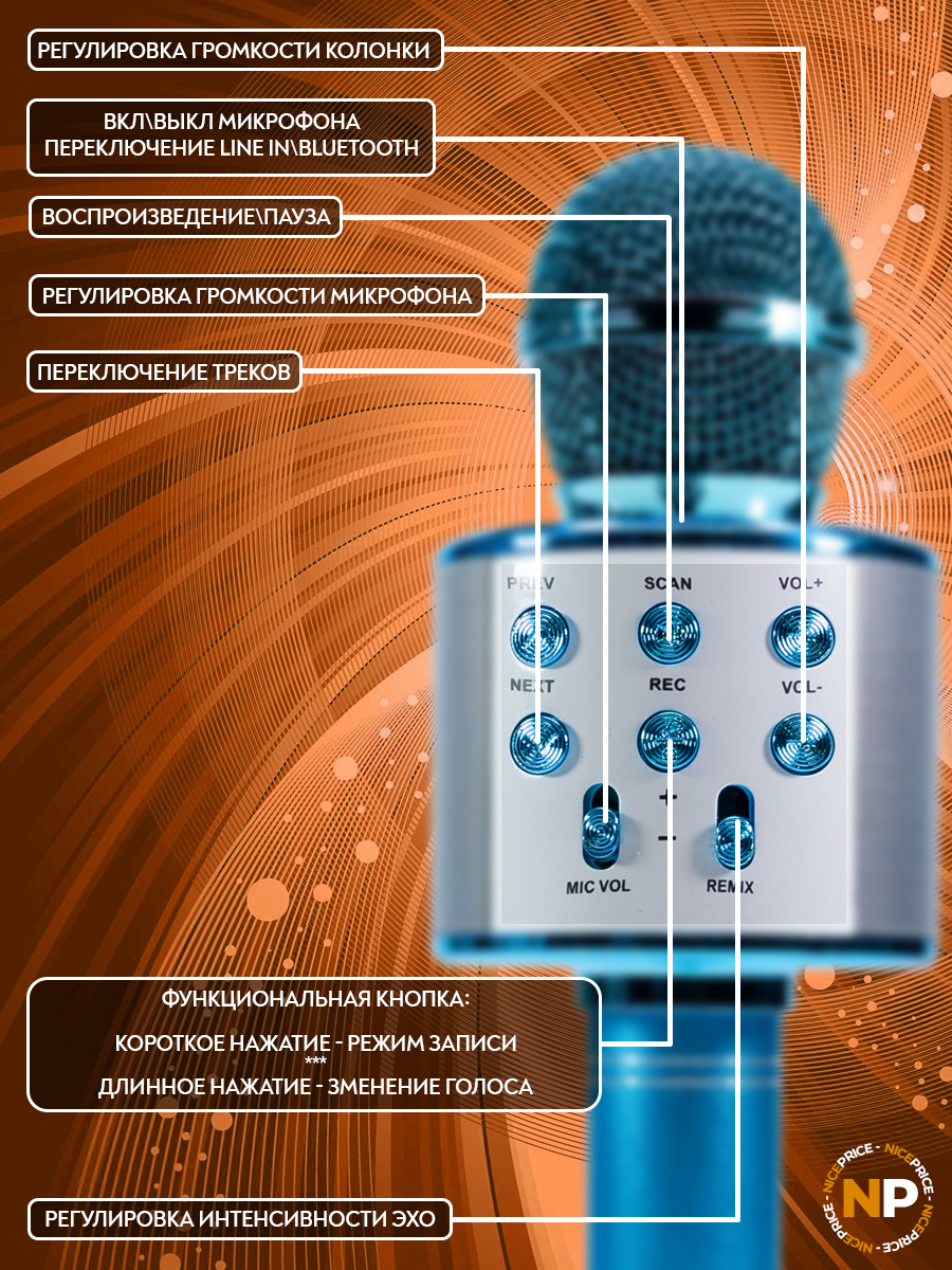 Эта домашняя караоке-система поддерживает Bluetooth (блютус), что позволяет воспроизводить музыку с вашего смартфона. Кроме того, микрофон можно соединить с USB-флешкой, microSD или использовать AUX для воспроизведения. Такая функциональность делает микрофон идеальным выбором для вечеринок и встреч с друзьями, где легко можно устроить караоке-вечеринку с вашим списком воспроизведения.